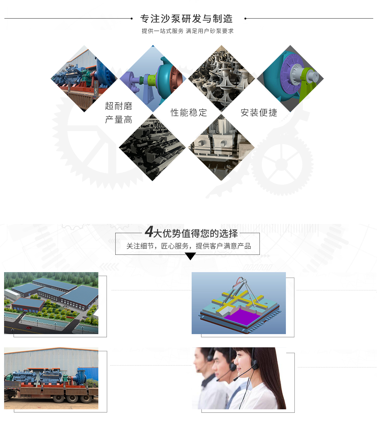 本公司長期致力于地下沙礦、江沙、海沙、礦砂開采用泵的研發(fā)與制造。在過去二十多年的生產(chǎn)及使用中,我們對各種開采環(huán)境用泵有著豐富深刻的實(shí)踐經(jīng)驗(yàn)及理論總結(jié)。對深層沙礦、淺層沙礦、沙礦的不同層深、高原、高壓、黃沙輸送距離等各種條件下的不同需要,制定出不同的對應(yīng)產(chǎn)品,以滿足用戶需求。